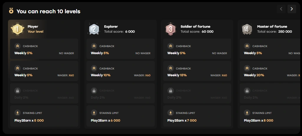 Players can check their progress at any time in their account to see how far they are from reaching the next level. This system is designed for maximum transparency and player motivation.
